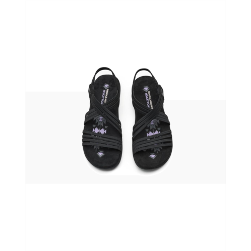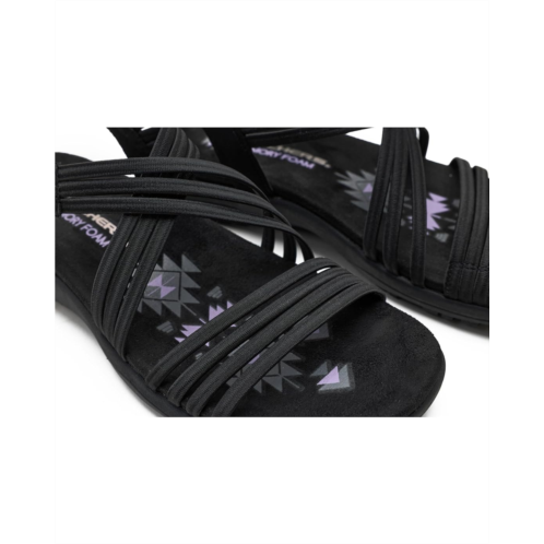 - Make your style and comfort out of sight with Skechers Reggae Slim - Sunnyside 2.0. This sandal features a synthetic and soft Stretch Fit fabric upper with an adjustable strap, plus a cushioned Skechers Memory Foam footbed. It comes with open round toe, adjustable hook-and-loop closure, brand detailing on the footbed, and strap.
