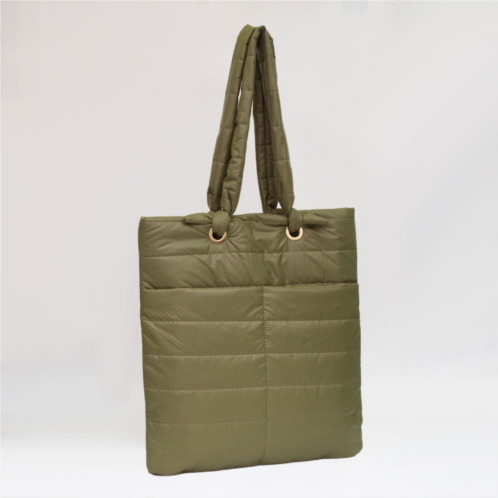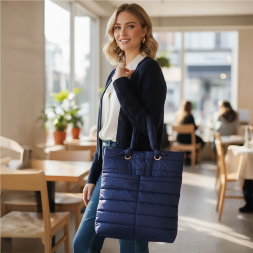 Size - 14' X 16' X 1'Top Handle Size - 7' LA lightweight quilted tote bag featuring a sleek padded finish, roomy interior, and comfortable handles for effortless everyday carry. Its clean, modern silhouette makes it ideal for work, errands, or travel while adding a refined, cozy touch to any outfit.