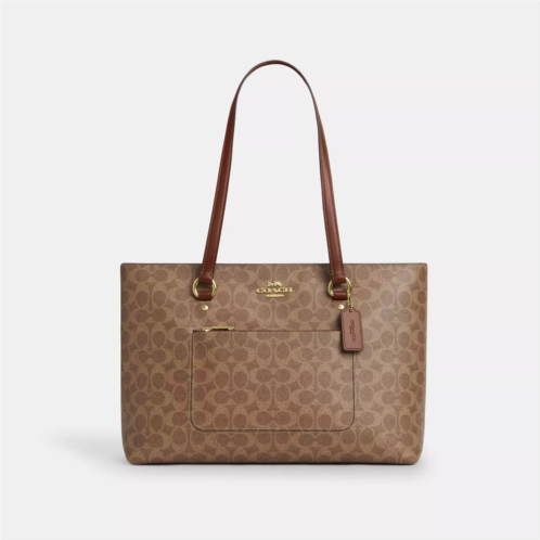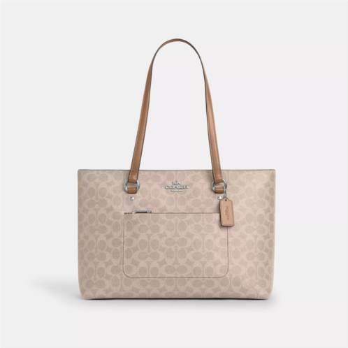 Signature coated canvas and smooth leather Inside zip cell phone and multifunction pockets Zip-top closure fabric lining Handles with 10 1/2 drop Outside zip pocket 13 3/4 (L) x 10 1/4 (H) x 5 (W) Style No. CCD69 | Coach Outlet Station Tote Bag In Signature Canvas - White, Size - Large
