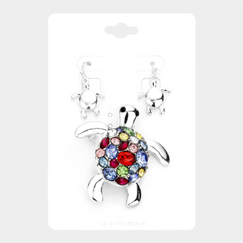 [US] FASHNZFAB multi stone turtle magnetic pendant set - antique silver multi