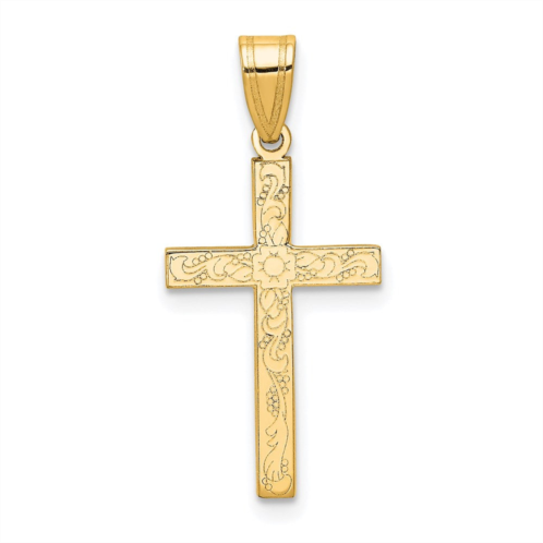 [US] Diamond2Deal 14k yellow gold etched floral cross pendant