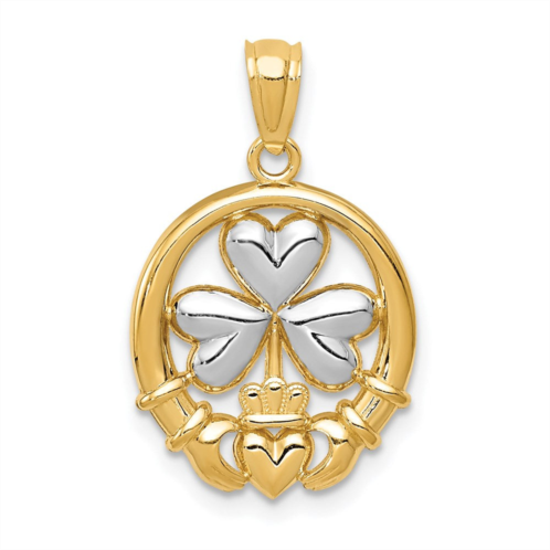 [US] Diamond2Deal 14k yellow gold rhodium-plated shamrock and claddagh pendant