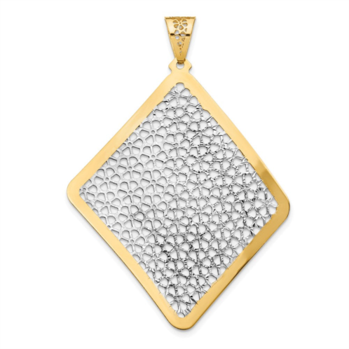 [US] Diamond2Deal 14k yellow gold w/rhodium polished floral cut-out pendant