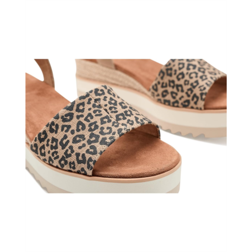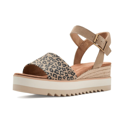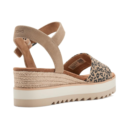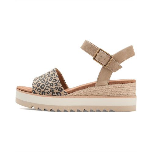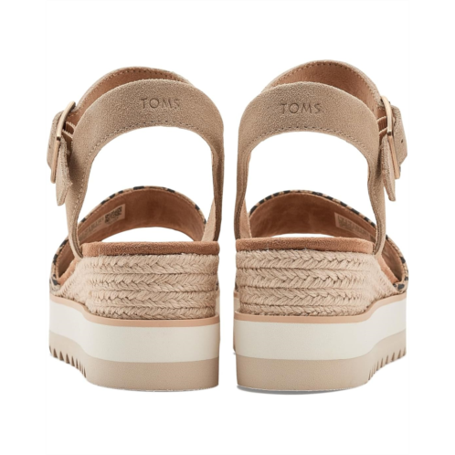 - The TOMS Diana Sandal is your go-to for chic, all-day wear with a mid-height platform wedge that adds just the right amount of lift. Crafted with a sleek leather upper and soft polyester lining, it features an ankle strap buckle closure for a secure fit. The Custom CloudBound foam insoles cushion every step, while the lightweight rope-wrapped midsole and EVA outsole with sawtooth detailing provide flexibility and traction. Finished with a PU insole and durable rubber outsole, this open-toe beauty blends fashion and function for any occasion.