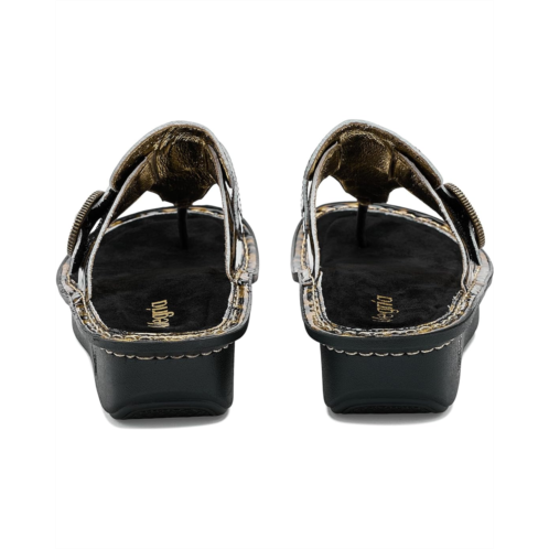 - Explore the shopping complex of the city wearing Alegria Kennedi footwear. Made of leather upper, the footwear features leather lining, leather insole, and slip-on style. An adjustable thong strap with hook-and-loop & buckle closure make the footwear complete in look. Underfoot is contoured for a gentle gliding motion as the foot moves.