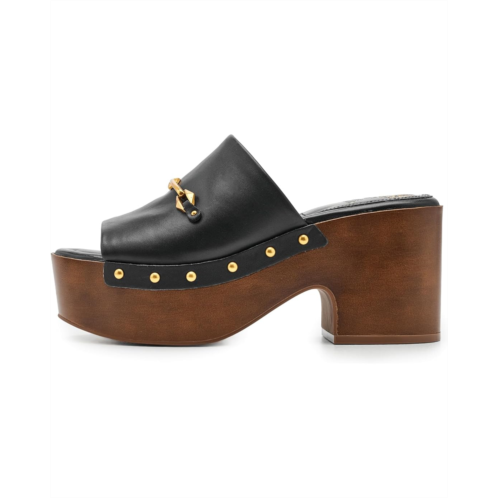 - Move into standout style donning the Vince Camuto Efellan Studded Platform Clog, where vintage-inspired design meets modern elegance. Crafted with a smooth leather upper and a soft polyester lining, this eye-catching clog delivers both structure and comfort from day to night. The chunky block heel and thick platform create a confident lift while offering stability and all-day wearability. Gold-toned studs trace the silhouette for a luxe, fashion-forward edge, while the loafer-inspired metal bit across the vamp adds a refined, polished touch. Designed with a rubber insole and outsole, this pull-on style provides cushioned support and dependable traction with every step. Easy to slip on and impossible to ignore.