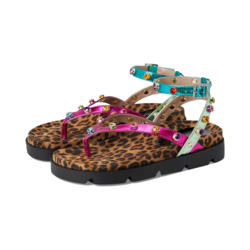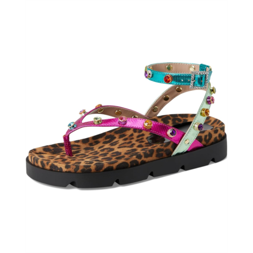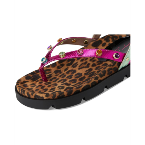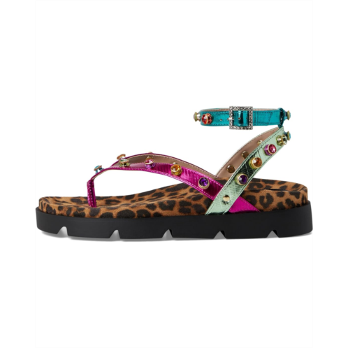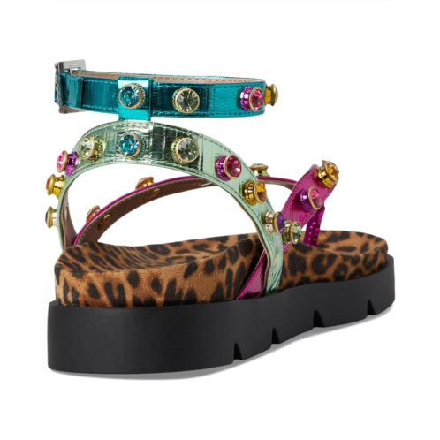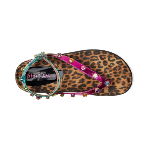 - The Blue by Betsey Johnson Conley is cool girl approved, with its platform leopard sole and rhinestone studs. This flatform sandal features a strappy upper design crafted from faux leather. The buckle adjustable ankle strap ensures a snug fit, while the comfortable footbed makes it perfect for all-day wear.