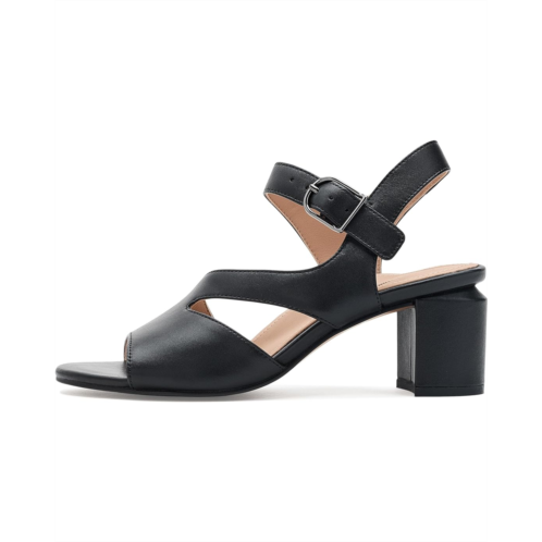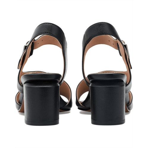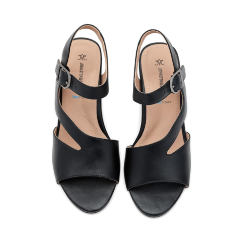 - The Johnston & Murphy Samantha Asymmetrical Sandals is a polished style that blends modern design with lasting comfort. Crafted with a nappa leather upper and leather lining, it features a lightweight TRUFOAM molded footbed with arch support for ultra-cushioning throughout the day. A metal buckle closure secures the fit, while the block heel adds refined lift. Finished with a synthetic rubber outsole and textured insert for traction.