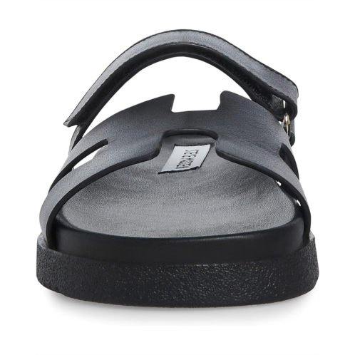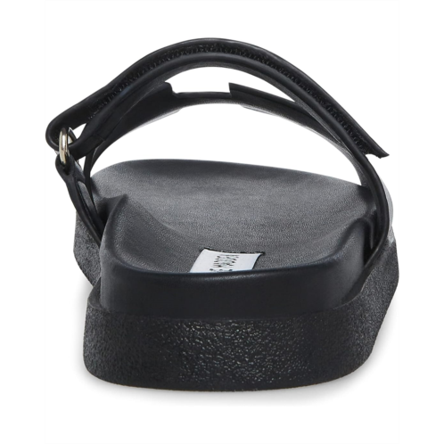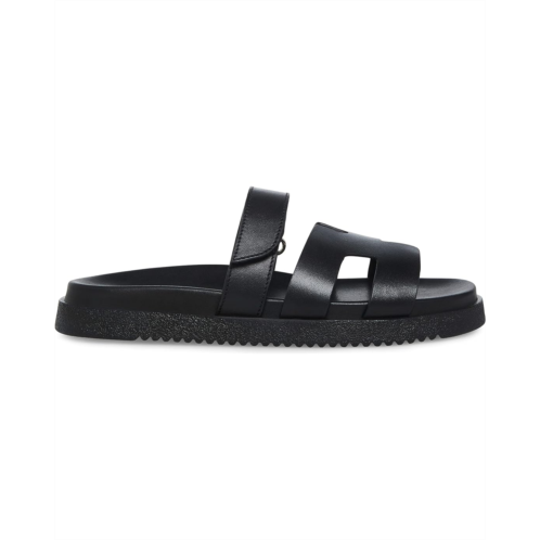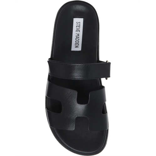 - The leather Steve Madden MAYVEN slides feature comfy construction details like a molded footbed, a treaded flatform sole, and an adjustable top strap, plus a front strap with a geometric cutout design.
