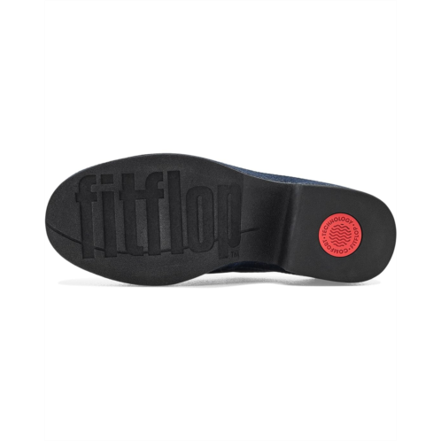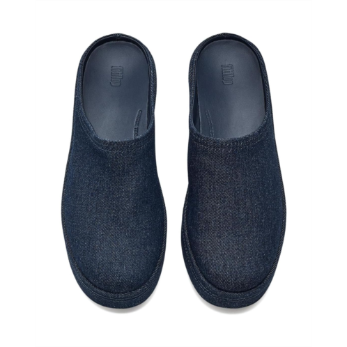 - Slip on and step up your everyday style donning the FitFlop Platfforms Denim Heeled Mules. Inspired by your favorite indigo denim, these chic mules bring the relaxed appeal of your denim drawer straight into your footwear rotation. The clean, minimalist silhouette pairs perfectly with everything from casual separates to polished looks, while the statement wedge heel adds just the right amount of lift. Crafted with a durable polyester upper, lining, insole, and outsole, they're lightweight, flexible, and easy to pull on for life on the go. Beneath the style, advanced CushX technology delivers plush, responsive cushioning that supports your natural movement all day long. Ergonomically engineered to optimize alignment and energy, these mules feature natural arch support and a slip-resistant outsole suitable for indoor and outdoor wear.