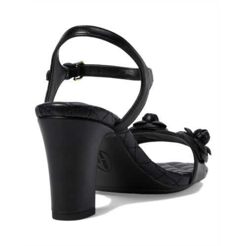 - Unlock your inner diva wearing the chic and classy Anne Klein Yardley. Crafted from man-made upper, lining and insole, this pair of stylish sandals features open square toe, block heels, eye-catching flower embellishment on the top, ankle strap with buckled closure and cushioned footbed. It comes with brand detailing on the footbed.