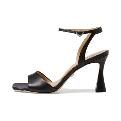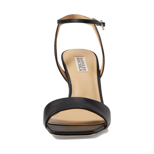 - Those who crave style have the ultimate power to wear the fashionable Badgley Mischka Cady heels. These leather-heel sandals are adorned with beautiful heart-shaped buckle closure with open square-shaped toes. With a slim ankle strap and stiletto heels, these patterned sandals have breathable leather lining and a cushioned footbed.