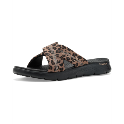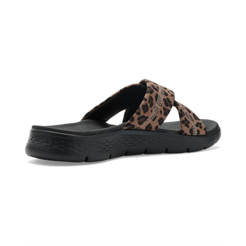 - Treat your feet with ultimate comfort and style wearing the Skechers Performance On-The-Go GO Walk Flex Sandals w/ Leopard Print. This vegan slide design features a woven memory foam fabric cross-strap upper, a contoured Goga Mat footbed, and lightweight ULTRA GO cushioning.