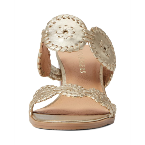 - Featuring round woven vamp and toe straps, the Jack Rogers Lauren Mid Heel looks chic and pairs well with your retro look.