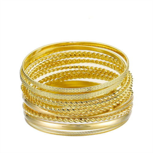 This Multi Textured Bracelet Set from Liv Oliver Jewelry is a stunning addition to any jewelry collection. Crafted from the finest 18k Gold Plated plating material, this bracelet has a 2.65' inner diameter and fits most wrists.