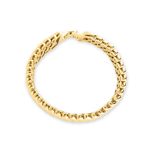 Introducing the Sterling Forever Bethany Ripple Watch Band Bracelet, the perfect accessory for the bold and chic woman. This sculptural bracelet features a fluid, wave-like design that exudes effortless style. The vintage-inspired watchband links add a touch of glamour, making it perfect for stacking or wearing solo as a sleek accent. Made from 14k gold plated or rhodium plated brass, this bracelet measures 7 inches in length, with a 15mm wide chain and 5mm thickness. It is lead and nickel free, ensuring both style and comfort. Elevate your jewelry collection with the Bethany Ripple Bracelet from Sterling Forever.