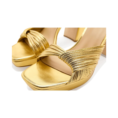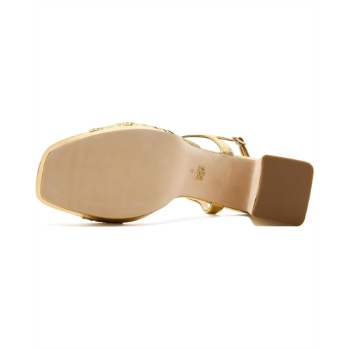 - Step into refined glamour with the Badgley Mischka Winslet Platform Sandal. Designed to make a statement, this elegant heel features a contemporary square toe and a secure ankle strap for a confident, comfortable fit. The intricately woven leather upper adds rich texture and visual interest, while the sturdy block heel delivers both height and stability. A supportive platform balances the striking heel, making it ideal for special occasions, evening events, or elevated everyday style. Offered in luminous metallic and sleek flat leather finishes, the Winslet effortlessly complements a range of looks. An open-toe silhouette keeps the design light and airy, while the premium leather sole ensures lasting quality and durability.