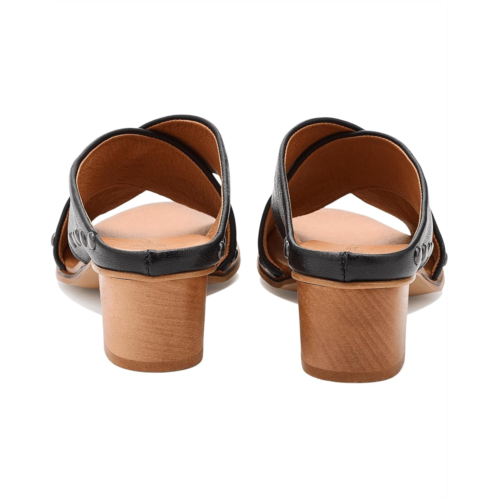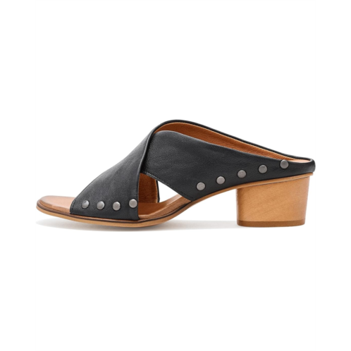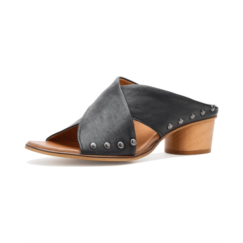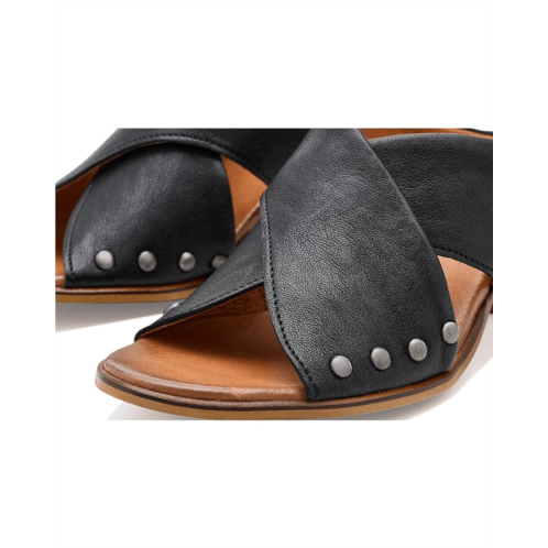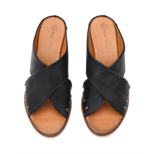 - Eric Michael Hila is a sandal that can go anywhere with you, dressed up or dressed down she will fit in nicely. Crafted from leather upper, lining, and cushioned leather insole, this pair of sandals features open round toe, bold crisscross strap slide design, modern metal stud detailing along the edges, and natural stacked block heel for confident lift.