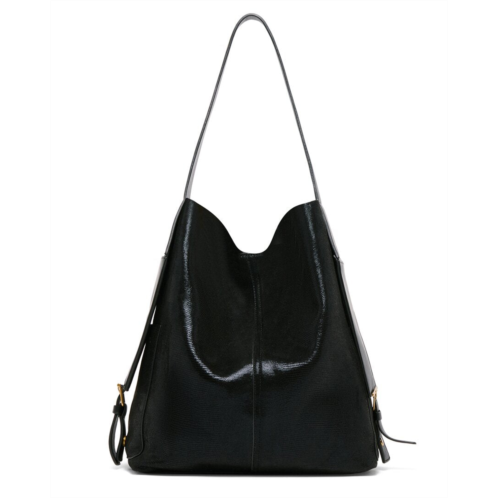 - Arden Tote In Black Pu And Dark Brass-Tone Hardware With Side Flap Pockets