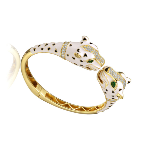 [US] Genevive sterling silver 14k gold plated with multi-colored cubic zirconia panther swivel bangle bracelet