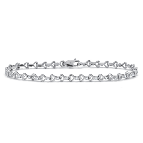 [US] Palm Beach Jewelry .15 tcw diamond sterling silver heart link bracelet 7 inches
