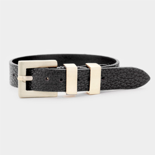 [US] FASHNZFAB faux leather belt buckle wrap bracelet black gold