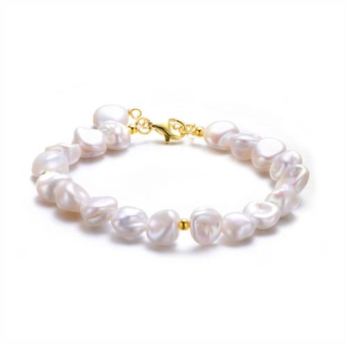 [US] Genevive sterling silver 14k gold plated with white freshwater round pearl bracelet