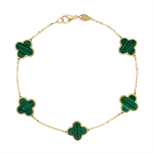 [US] Italian Gold 14k yellow Gold clover bracelet -malachite