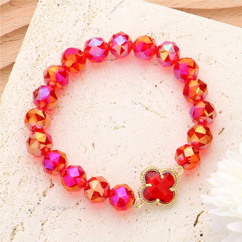 [US] FASHNZFAB quatrefoil pointed faceted beaded stretch bracelet gold red