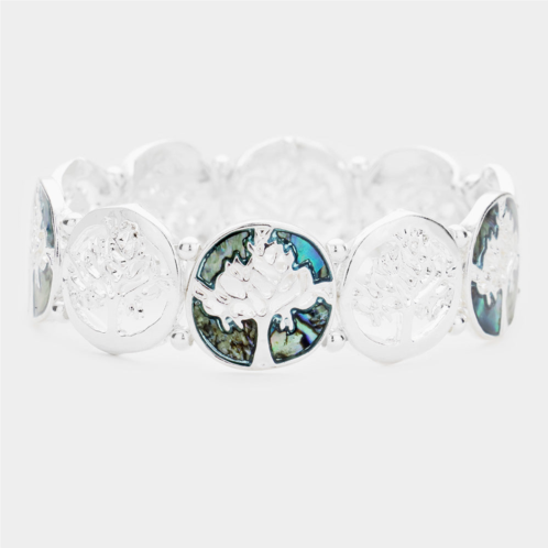 [US] FASHNZFAB abalone tree of life metal stretch bracelet abalone silver