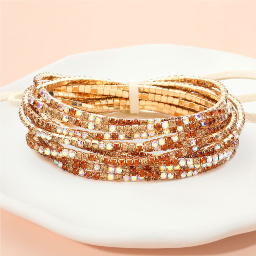 [US] FASHNZFAB 12pcs - ribbon colorful rhinestone layered stretch bracelets - topaz