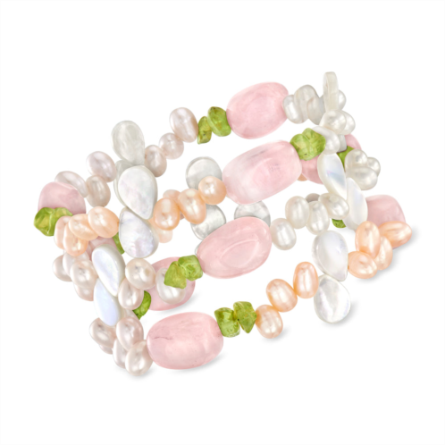 [US] Ross-Simons 4-5mm multicolored cultured pearl and multi-gemstone jewelry set: 3 stretch bracelets