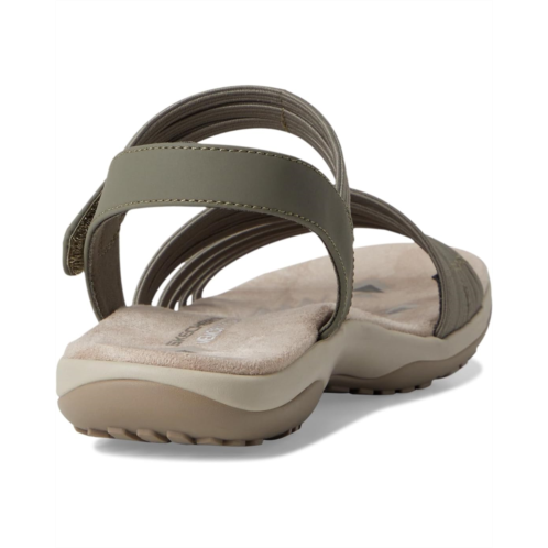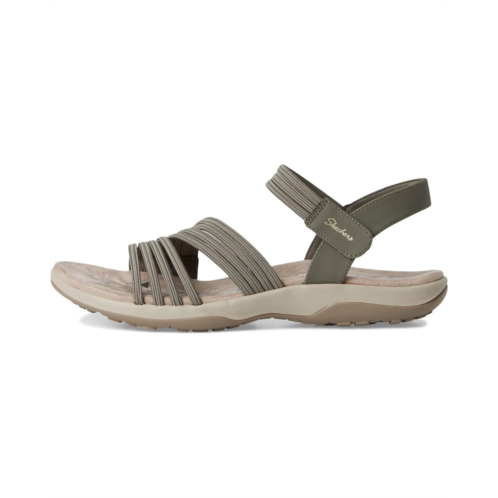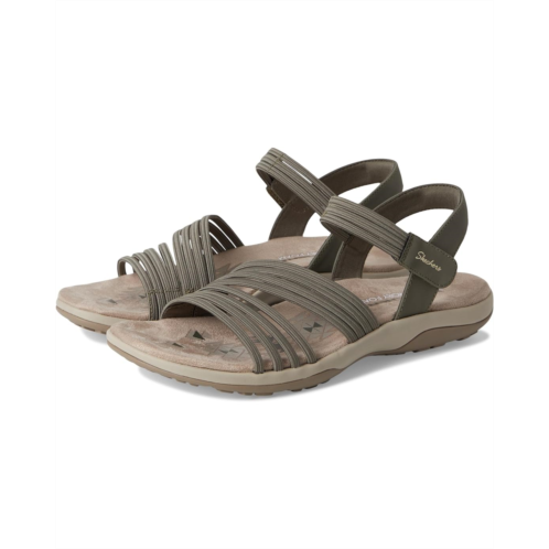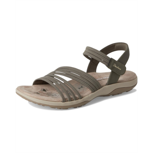 - From poolside to the sidewalk, experience all-day comfort wearing SKECHERS Reggae Slim - Coffee Run Sandals in water-resistant construction. The vegan sling back sandal features a Stretch Fit multi-strap smooth synthetic leather & soft stretch fabric upper with two adjustable straps, a leather lining, and a cushioned Skechers Memory Foam footbed.