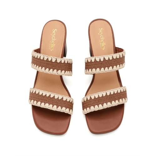 - Elevate your casual style with the Seychelles Hattie slide sandals. These heeled sandals feature a chic two-tone double-band polyurethane upper and comfortable heels that provide just the right amount of lift. They are made of a padded, faux leather insole and faux leather lining. Their raffia upper is styled with contrast stitching.