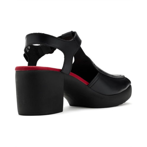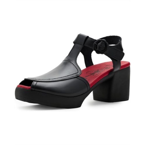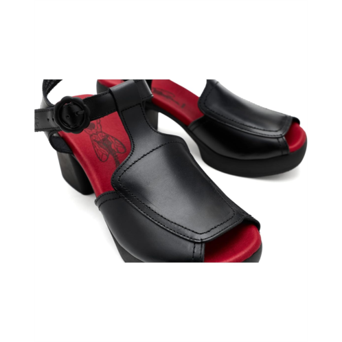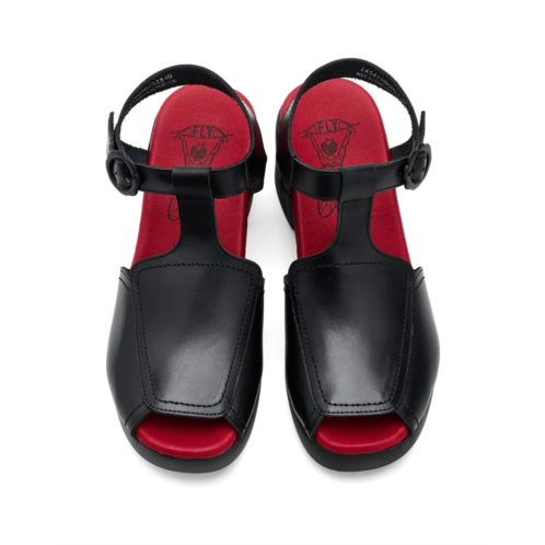 - The FLY LONDON Flig419fly has trendy block heels with a 1-inch forepart on a rubber sole. The heel-to-toe cushioned insole and rounded-toe shape add to the overall comfort of these sandals. Crafted with a premium leather upper, this sandal offers a sleek, durable finish. The cushioned foam insole provides supportive comfort for extended wear, while the buckle closure ensures a secure, adjustable fit.