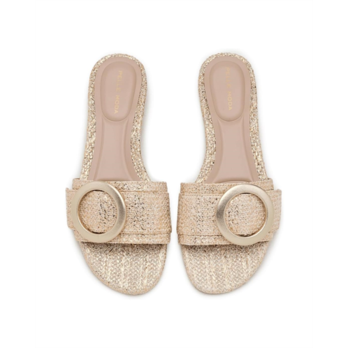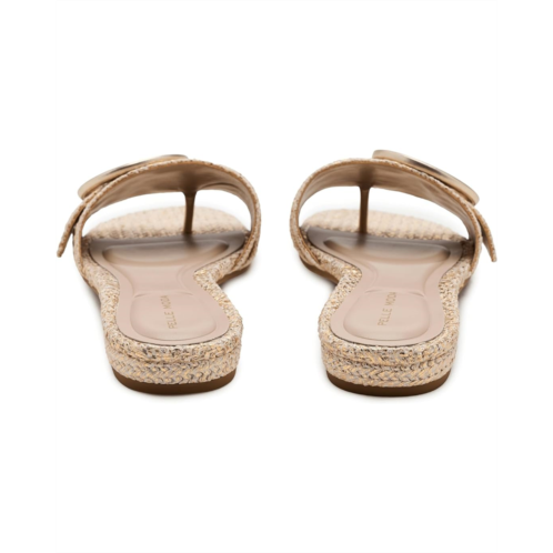 - Meet the Pelle Moda Bianka, a chic flat sandal designed for days when style and comfort need to move together. Crafted with a natural cork upper, this silhouette feels lightweight yet grounded, while the faux leather lining and outsole add a polished finish that wears beautifully from day to night. A sleek single-band upper is elevated with an oversized ornament, making a subtle statement without overpowering your look. The hidden toe post is thoughtfully designed to enhance ease of walking, giving you stability without sacrificing elegance. A covered block heel adds just the right lift, while the foam-padded footbed cushions every step for all-day comfort.