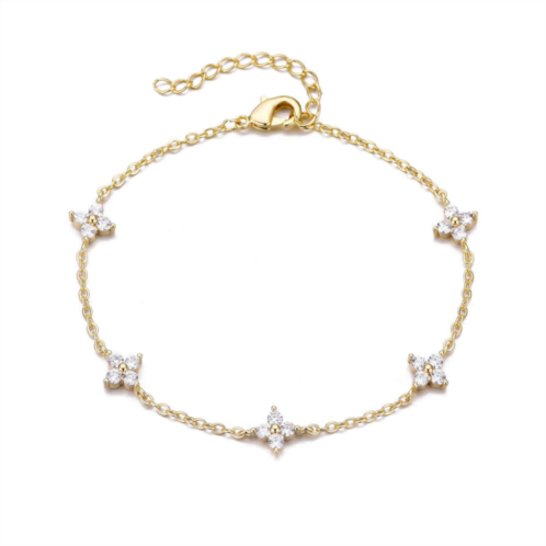 Adornia Women's 14k Yellow Gold Plated CZ Flower Station Bracelet
