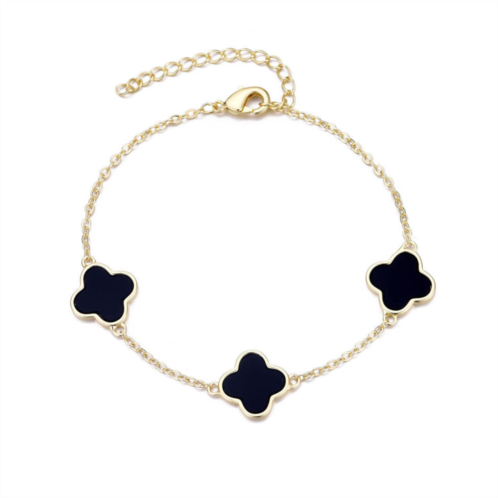 [US] Adornia 14k yellow gold plated black clover station bracelet