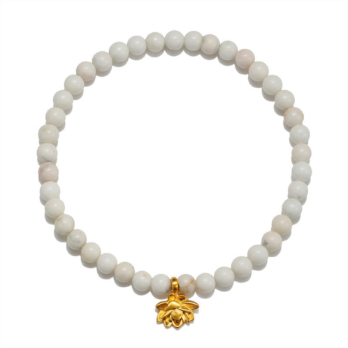 Walk in harmony with those you meet on your journey; open your heart to their wisdom. A gemstone bracelet of white turquoisestone of balance, and healingencourages harmony in its wearer while a delicate golden lotus flower inspires new beginnings. Wear this stretch bracelet alone, or stack it with other healing gemstone bracelets for a truly personalized look.