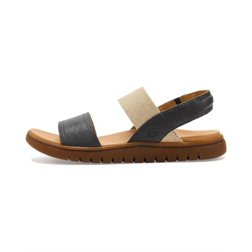 - Spend your war-weather days and nights in the color-blocked comfort of the Born Amabel sandal. Crafted from soft, hand-finished full-grain leather and elasticized fabric combination upper, breathable micro-fiber lining, and cushioned micro-fiber-covered footbed with added foam for extra comfort.