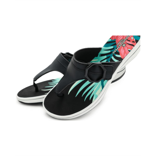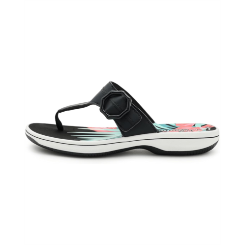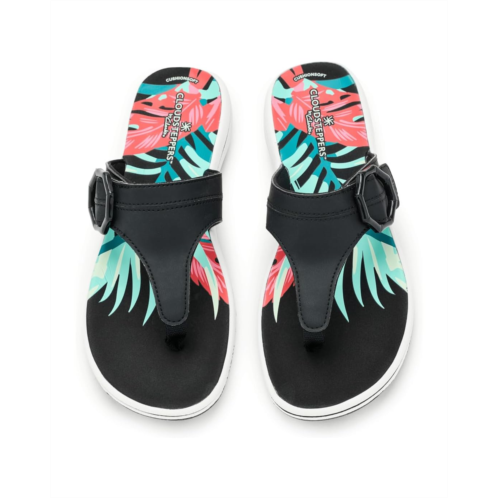 - The Clarks Cloudsteppers Breeze Cove Flip-Flop is prepped for a season of warm-weather exploring and channels signature Cloudsteppers comfort with its Cushion Soft foam footbed for shock absorbtion. Adjustable riptape strap with decorative buckle delivers a secure, custom fit. The thongkorea slippers are completed with a grippy and flexible thermoplastic rubber outsole that brings extra stability and traction.