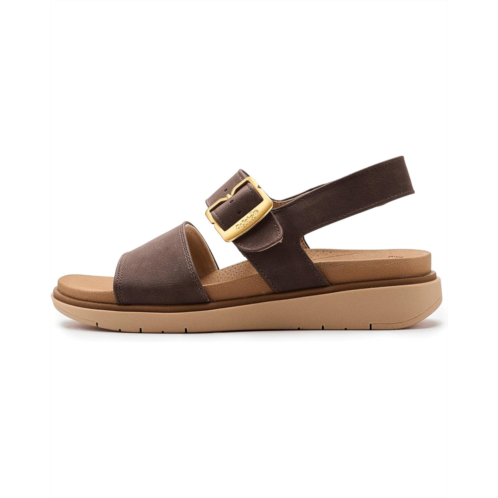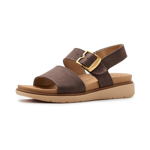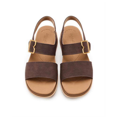- Slide into next-level comfort and all-day style wearing the Dr. Scholl's Posie, a modern take on iconic slingback sandals designed to keep you moving with ease. Crafted with a smooth PU upper and lining, this minimalist must-have pairs a wide front strap and open-toe silhouette for a clean, timeless look that works from morning errands to evening strolls. Inside, the Feel Good Foam insole delivers plush cushioning and responsive bounce, helping reduce pressure on your feet so every step feels lighter. The flat footbed keeps things relaxed and versatile, while the ultra-flexible, lightweight synthetic rubber outsole moves naturally with you for effortless wear. An adjustable ankle strap with hook-and-loop closure and a chic metallic buckle ensures a secure, customized fit and easy on/off. Thoughtfully designed with partially recycled fabric lining, the Posie blends feel-good style, sustainable touches, and signature Dr. Scholl's comfort.