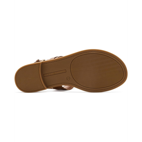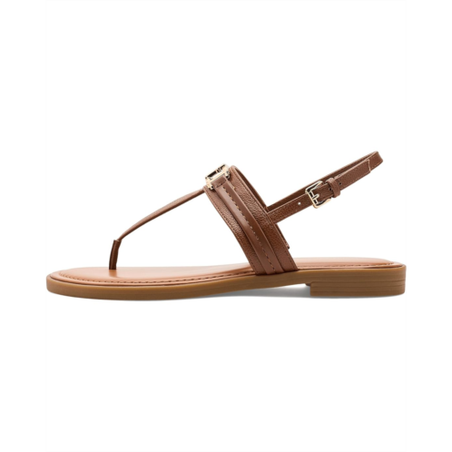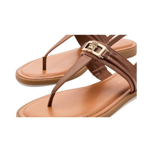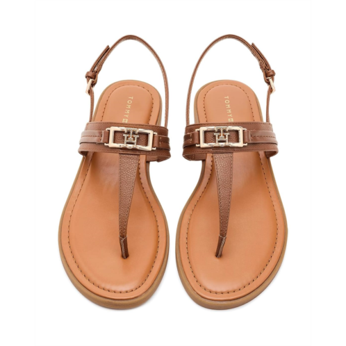- The Tommy Hilfiger Cruman is a sleek everyday sandal featuring a comfortable footbed, buckle adjustable back strap, and polished logo hardware. Soft, versatile, and effortlessly refined, the flat features an open almond toe and a faux leather upper with polyester lining that delivers a polished yet easy-to-wear silhouette.