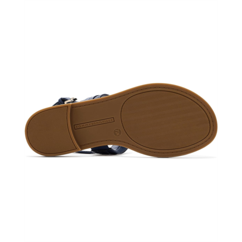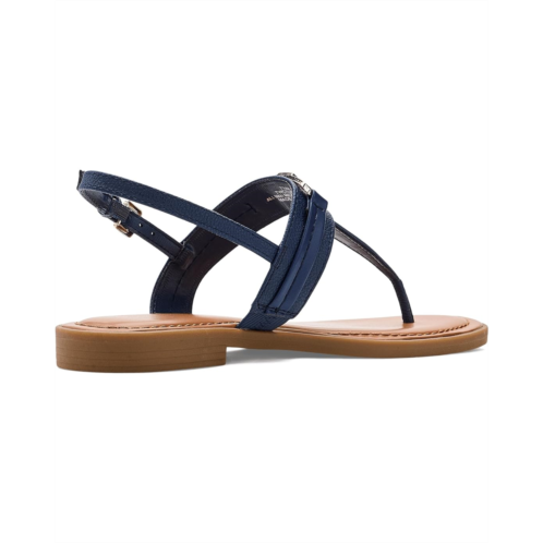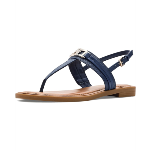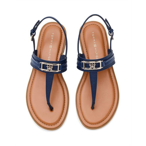 - The Tommy Hilfiger Cruman is a sleek everyday sandal featuring a comfortable footbed, buckle adjustable back strap, and polished logo hardware. Soft, versatile, and effortlessly refined, the flat features an open almond toe and a faux leather upper with polyester lining that delivers a polished yet easy-to-wear silhouette.