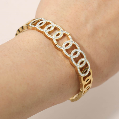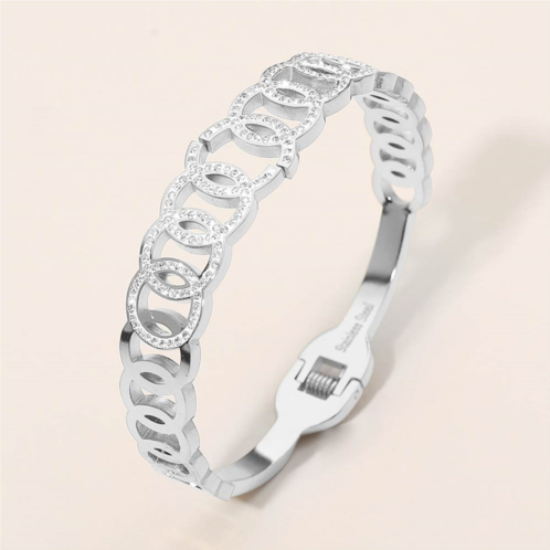 [US] FASHNZFAB stainless steel cz pave circle link hinged bangle bracelet
