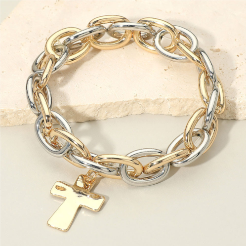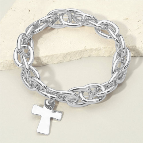 [US] FASHNZFAB metal cross charm chunky chain link stretch bracelet