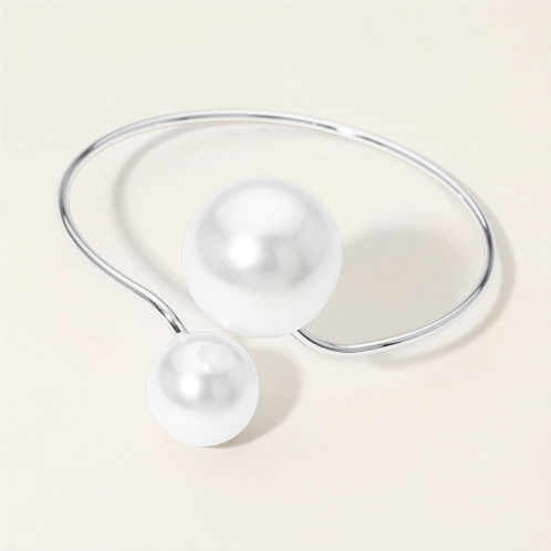 Size - 1.75' H, 2.75' DCuffContemporary open cuff bracelet featuring dual pearl accents in contrasting sizes along a sleek curved band. Designed for easy slip-on wear, this minimalist statement piece adds refined elegance and modern charm to both casual and dressy outfits.