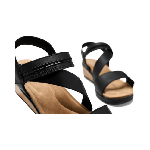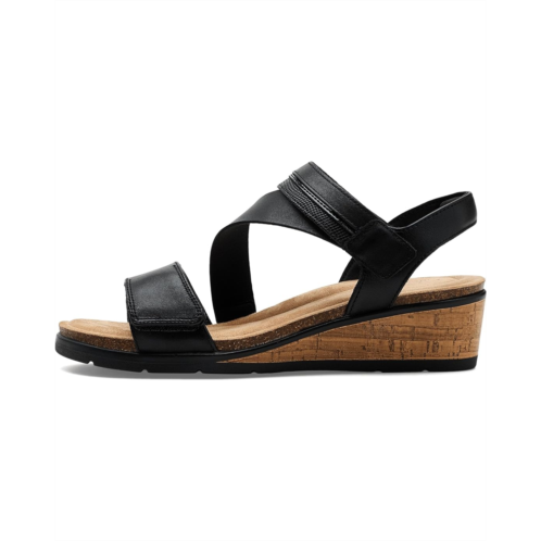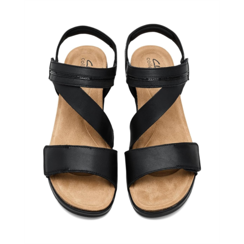 - The Clarks Kacha Wave bridges the gap between modern and heritage aesthetics, offering a versatile low wedge perfect for everyday wear. Crafted from soft, premium leather upper and complete with classic details, this shoe can be dressed up or down. The heel height provides effortless elevation, while the contrast decorative straps add interest. It features open round toe, adjustable strap hook and loop closures offer a secure, custom fit, water-dipped stacked wedge heel, and brand detailing on the footbed.