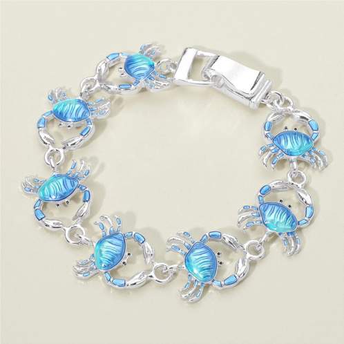 Size - 0.75' H, 7' + 0.5' LMagnetic ClosurePlayful crab charm bracelet featuring detailed linked designs and a secure magnetic closure for easy wear. A fun ocean-inspired accessory ideal for beach boutiques, gift shops, and seasonal collections, offering eye-catching character, comfortable fit, and everyday coastal style appeal.
