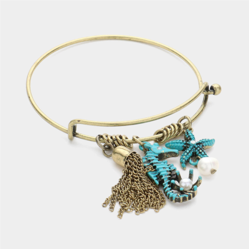 [US] FASHNZFAB metal chain tassel & seahorse starfish pearl charm hook bracelet gold burnished turquoise